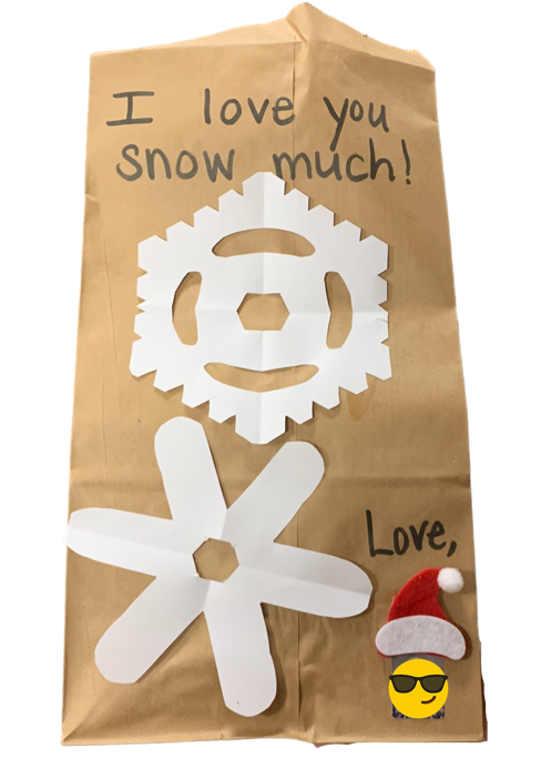 At the top of the brown bag, have students write, "I love you snow much!"